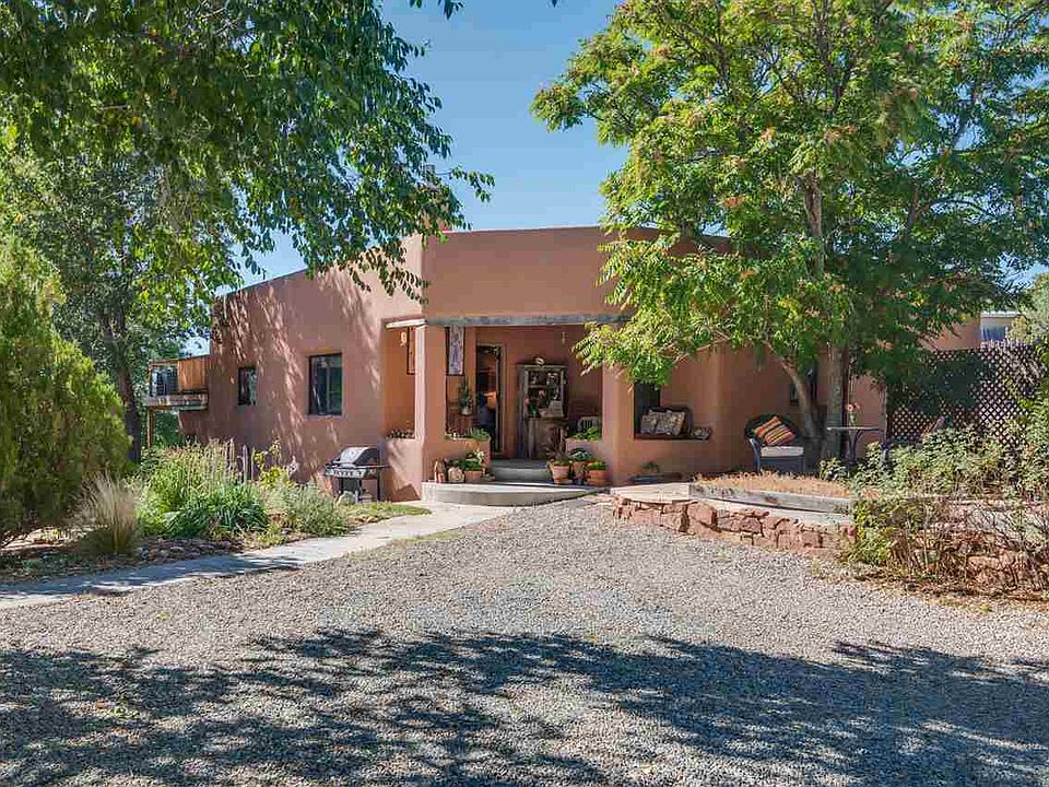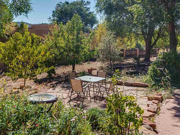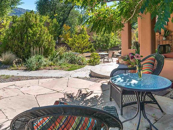 Located on Museum Hill at the Old Stagecoach turnaround. This home is completely charming and one of a kind, adobe tucked behind gates just off Avenida Lejos. The interior walls are plaster with no painted walls. Located on ½ acre, there is ample level building area. The yard is completely enclosed. The home has custom cherry cabinets, Corian countertops, Jenn-Aire appliances, tongue and groove ceilings and Pella windows. The living room has original hard wood floors and radiant heat throughout. From the Master bedroom, sliding doors lead to a covered portal with a mountain view.