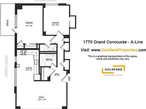 Incentive: 1.0 month(s) free on a 12 month lease. The gross rent reflected on the lease agreement is $2,999 and the net effective rent is $2,749. (Promotions apply to new residents and immediate move-ins only.) No-fee 2 bedroom, 2 bathroom apartment located on the Grand Concourse in The Bronx. Apartment features a large living room, renovated kitchen with stainless steel appliances, hardwood floors, and a private terrace. The Grand is a 24-hour doorman building with amenities including an on-site parking garage, fitness center, and elevator. Images may reflect either a model unit or comparable apartment with a similar layout and/or finishes. The actual apartment may slightly differ.