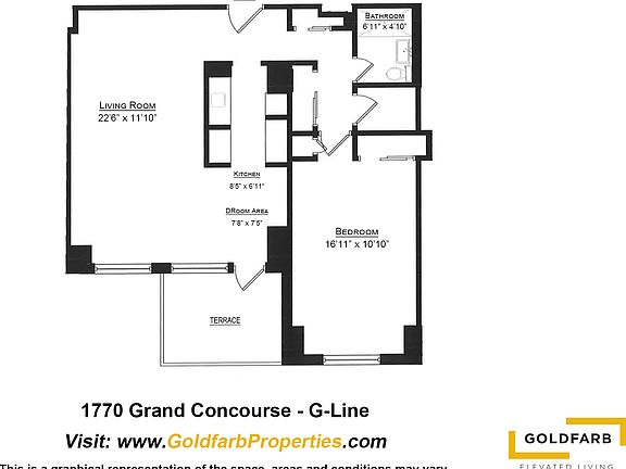 Incentive: 1.0 month(s) free on a 12 month lease. The gross rent reflected on the lease agreement is $2,599 and the net effective rent is $2,382. (Promotions apply to new residents and immediate move-ins only.) Renovated 1 bedroom, 1 bathroom apartment located on the Grand Concourse in The Bronx. Apartment features hardwood floors, stainless steel appliances, and a private balcony. The Grand is a 24-hour doorman building with amenities including an on-site parking garage, laundry facilities, fitness center, and a convenient location near multiple bus and subway lines (B/D/4). Please note photos and floorplans are for illustrative purposes only. Images may reflect either a model unit or comparable apartment with a similar layout and/or finishes. The actual apartment may slightly differ