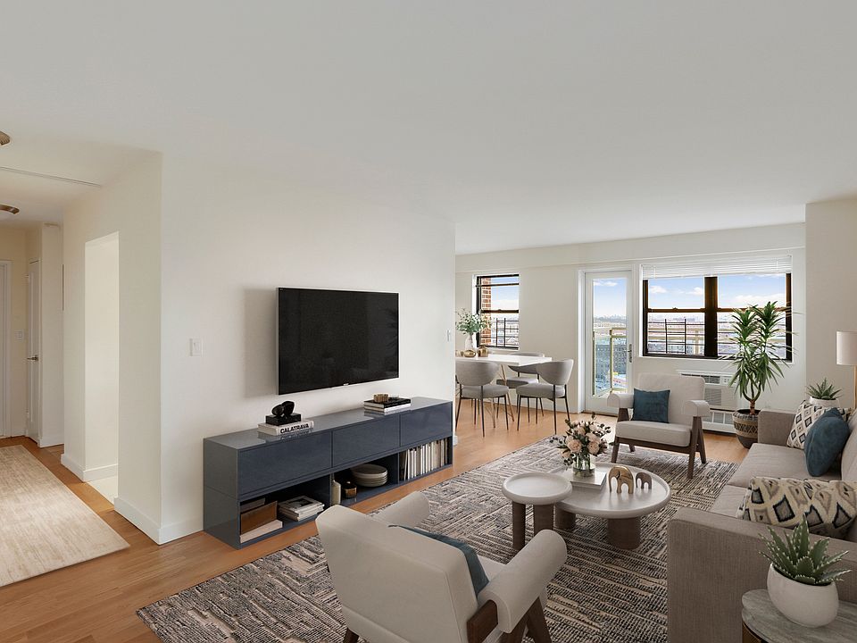 Incentive: 1.0 month(s) free on a 12 month lease. The gross rent reflected on the lease agreement is $2,599 and the net effective rent is $2,382. (Promotions apply to new residents and immediate move-ins only.) Sunny 1 bedroom, 1 bathroom apartment located on the Grand Concourse in The Bronx. This large and sunny apartment features hardwood floors, stainless steel appliances, and a private terrace. The Grand is a 24-hour doorman building with an on-site parking garage, fitness center, and located near several public transit options. Please note photos and floorplans are for illustrative purposes only. Images may reflect either a model unit or comparable apartment with a similar layout and/or finishes. The actual apartment may slightly differ.