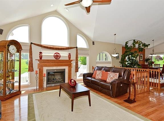 Honey stop the car! This 3800+ sq ft ranch on 3 acres w/ beautiful views will knock your socks off. The exterior offers brick/stone front, vinyl siding, enclosed soffits, 4in gutters, 3 car oversized garage, architectural roof, inground salt water pool, split staircase w/ Azek flooring, cedar screened in porch w/ vaulted ceiling, 36X30 outbuilding w/ 2 car garage, concrete floors & 200 amp service. Upon entering the front door, you will be greeted by gorgeous wood flooring, vaulted ceilings & an open floor plan. The kitchen boasts new granite countertops, 42in custom made hickory cabinets w/ crown molding & roll outs, 5 burner cook top, stainless appliances, vaulted ceilings, center island w/ breakfast bar, ceramic tile flooring & a breakfast room. Some of the features include: 9ft ceilings, mfl, 2 panel doors, low E glass windows, gas fireplace & a finished lower level w/ 2 walk-outs, 4th bedroom, full kitchen, stainless appliances, 400 amp, work/hobby area, 1.5 baths & 2 rec rooms.
