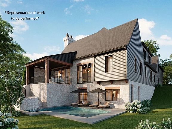 Ultra-luxury new construction on a private non-HOA lot within walking distance of Downtown Alpharetta. This home is thoughtfully designed with refined architecture, elevated finishes, and a private guest suite with its own living quarters or executive office and separate entrance. Completion is expected in March 2026. Inside, a stunning 22’ vaulted living, kitchen, and dining space creates an unforgettable first impression. The room features a wood-burning fireplace, custom inset white-oak cabinetry, premium Taj Mahal Quartz, Italian alabaster/marble lighting, Wolf/Sub-Zero/Cove appliances, and a beautifully executed pantry. Every cabinet in the home is fully custom with dovetail drawers and Blum hardware, paired with 9.5” European white-oak flooring. The primary suite offers a serene retreat with a steam shower and a boutique-style closet with LED lighting, glass-front cabinetry, and a glass-topped island. The finished terrace level adds 10’ ceilings, a guest bedroom, a concrete encased safe room/storm shelter, a fully equipped home theater, a home gym with a built in infrared red light sauna and shower/cold plunge, and direct walkout access to a private pool and spa. The backyard and side yard extends further to wooded greenspace for complete privacy. Above the garage, a separate guest apartment includes a full kitchen, secondary master bedroom, bathroom, closet, and private entrance—perfect for extended family or a dedicated office. Additional features include upgraded high-efficiency HVAC, spray-foam insulation, three oversized garages with 10’×9’ doors, motorized blinds, built-in indoor and outdoor speakers, and integrated security cameras. *Renderings are a representation of work to be performed.*