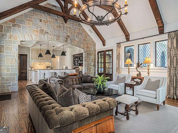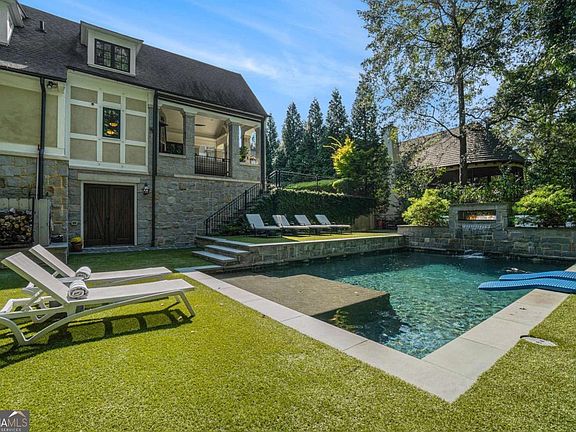 Architectural Excellence on Merton Road! Experience Morningside at its finest in this custom-built masterpiece on sought-after Merton Road. Designed by the renowned Frank Neely and meticulously crafted by Neil Johnson of Canonbury Homes, this one-owner residence is a rare fusion of limestone, granite, and slate. From the elegant porte-cochere to the copper gutters and lush professional landscaping, every detail signals a home of incomparable quality. The interior is a sanctuary of soaring ceilings and sophisticated textures. A grand foyer opens to an oversized dining room and a handsome private office, both anchored by bespoke fireplaces. At the heart of the home, the chef's kitchen-featuring double islands, hand-carved wood floors, and Ann Sacks tile-flows seamlessly into a beamed Great Room. Transition through the iron-glass sunroom to a breathtaking backyard oasis, where a heated pool, hot tub, putting green, and expansive covered porch with a fireplace offer the ultimate in private, year-round entertaining. The upper level is an architectural study in light and scale, boasting 10-foot domed ceilings and rich moldings. The primary suite serves as a true retreat, complete with a spa-inspired bath and a private terrace overlooking the grounds. Three additional ensuite bedrooms and a large laundry room occupy this level, while a private sixth guest suite is tucked away via its own dedicated staircase. The terrace level is a destination unto itself. With 10-foot ceilings, a high-end teak wet bar, a climate-controlled wine cellar, and a professional-grade movie room, it is the premier space for recreation. A dedicated home gym and direct pool access-complete with a changing area-ensure every modern convenience is met. This is a rare opportunity to own a legacy property in Atlanta's most coveted walkable neighborhood.