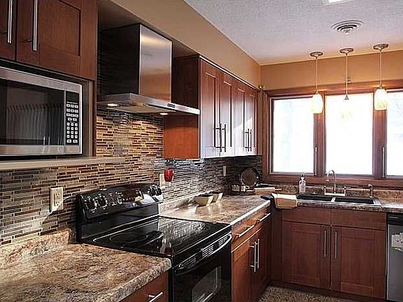 Wonderful, spacious & open floor plan with several windows provides a bright sunny space. New kitchen and appliances. Both baths have been updated. Extra large bedrooms. Lower level family room has a bedroom and bath. Nice lower level laundry room with new dryer. 14x14 3 seasons room overlooks a wooded fenced back yard. Patio is great for entertaining and grilling out. New roof, gutters, central air & water heater. Spacious 2 car drive under, attached and insulated garage. Popular NE area close to I380.