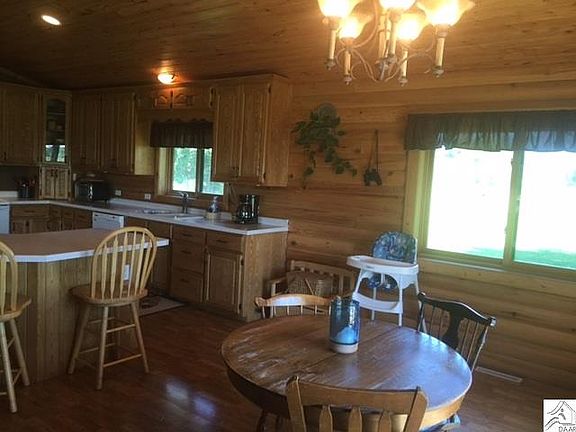 Spacious log home ready for new owners! 5 BD, 3 BA, 5 acres, geothermal heat, 36x56 pole barn/lean to for horses, fenced. Master suite with jetted tub. Basement rec room with bar. Recently painted, new basement carpet. Don't miss out.