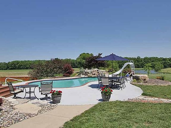 APRX. 9.3 ACRES. JUST ADDED 4 ACRES TO MAKE THE TOTAL 9.3 ACRES. ELEGANT, ONE OWNER, CUSTOM, QUALITY BUILT BRICK HOME ON APRX. 5ACRES WITH ADDITIONAL ACREAGE AVAILABLE IN THE TRIAD SCHOOL DISTRICT. COUNTRY LIVING NEAR THE CITY! MANY UPGRADES AND EXTRAS. INGROUND POOL WITH WATERFALL, 36 X 48 INSULATED POLE BARN. CHEF'S DREAM KITCHEN WITH DOUBLE OVENS, GRANITE COUNTER TOPS, 42" HICKORY CABINETS, PULL OUT SHELVING, BUILT IN PANTRY, SPACIOUS BREAKFAST BAR. FOUR SEASON ROOM OFF BREAKFAST AREA. JACK & JILL BATH BETWEEN MAIN FLOOR BEDROOMS, UPSTAIRS BEDROOM WITH PRIVATE BATH. LUXURY MASTER BEDROOM SUITE WITH DOOR LEADING TO SPACIOUS DECK. INTERCOM AND STEREO SYSTEM, SECURITY SYSTEM, CENTRAL VAC, GAME ROOM AND LIVING ROOM HAVE GAS FIREPLACES. ANDERSON WINDOWS AND DOORS THROUGHOUT. 9' TO 12' CEILINGS THROUGHOUT MAIN LEVEL. 16 X 30 DECK OFF MAIN LEVEL AND 16 X 30 CONCRETE PATIO OFF WALKOUT BASEMENT. POND HAS DOCK TO FISH FROM. ADA COMPLIANT. ENJOY THE PEACE AND QUIET OF YOUR OWN PARADISE!