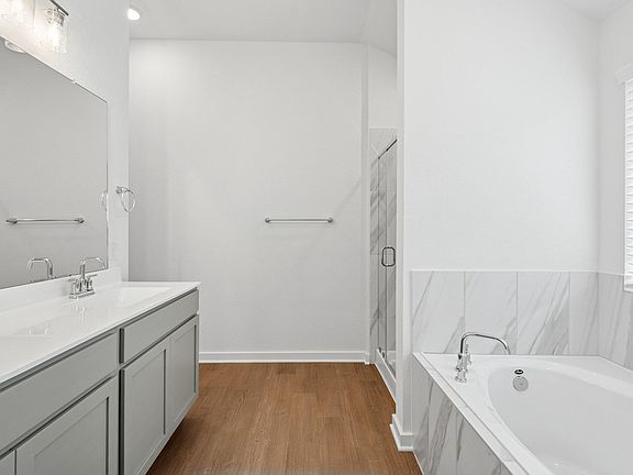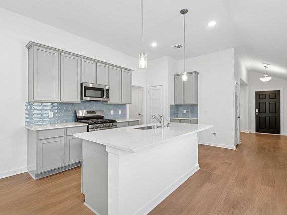Indian Springs is a stunning new development in the Crosby community. The Periwinkle plan is a modern 4-bedroom, 2-bathroom, and 2-car garage home built by M/I Homes. Upon entering the house through the inviting front porch, you'll find a long foyer that provides a clear view of the entire home. The open-concept living space comprises the family room, dining area, and kitchen, which is finished with granite countertops and sufficient storage space.
