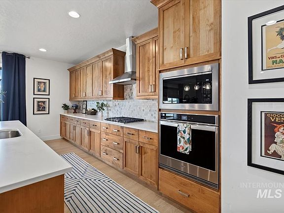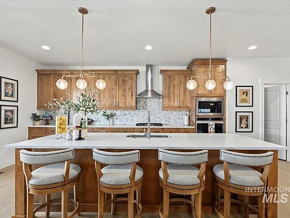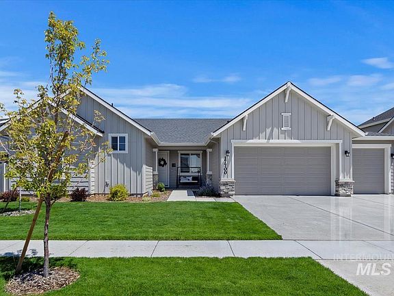 Discover the functionality of the "Graham" floorplan by Toll Brothers. This home boasts a split bedroom design that ensures privacy and an inviting kitchen/great room area complete with a breakfast bar, plenty of high end cabinetry, and stone countertops, perfect for entertaining. The covered patio is great for extending your living space outdoors with a great view of the mountains! Enjoy the luxurious primary bedroom suite featuring dual vanities, a tiled shower, a soaker tub, and a spacious walk-in closet. The 3-car garage with epoxy floors offers ample space for your vehicles, hobbies, or extra storage. There's also a stylish office with elegant glass French doors. Situated within the highly regarded West Ada School District and providing convenient access to the freeway, shopping, and local attractions—this location offers something for everyone. Looking for a nearly new home without the hassles of building? This great home comes with high-quality window coverings, water softener, and more!