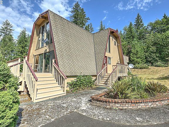 Neat Chalet home on wonderful 5.5 acres of peace and serenity. Exposed wood beams,vaulted ceilings,cozy wood stove, large windows, natural wood t/o, eating bar & deck with territorial view. Outside are a Shop, detached 2 car garage, circular driveway, RV parking & its adjacent to a large pond.All this dream property is secluded at the end of a quiet & private paved road/driveway close to 503. Country living at its best!