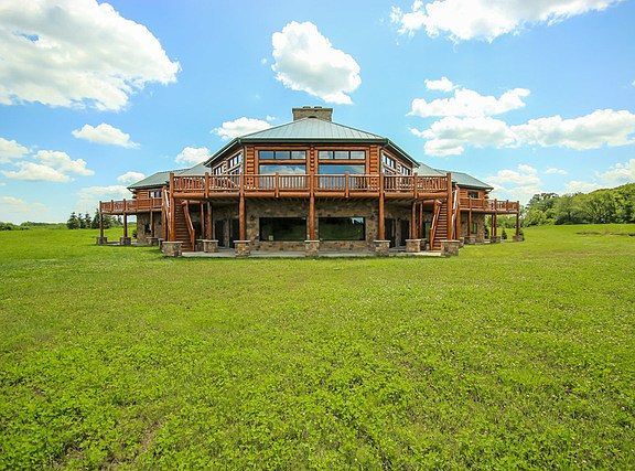 Open, bright, stunning 8,000 square foot log home on 40 rolling acres with 17' deep pond. 6-Bedrooms, 4 & 1/2 bathrooms (1 with steam shower). The 2-story Great room on the main level includes a 2 story stone fireplace for those chilly nights. Enjoy the fantastic views on the over-sized deck that wraps around the entire back of the home. Cook in a gourmet kitchen with slate counter tops, top of the line stainless appliances and warming/cooling drawers. Large walk in pantry. 8-Seat home theater, a wet bar, a wine cooler and family room (with fireplace) in the walkout lower level. This property would make a great get away, family compound or organic farm. Run a family business from the 50' x 80' steel out building that has 3-overhead doors, concrete flooring, bathroom, heat and electric (800 AMP 3-phase). Back-up generator for the house. This is truly a one-of-a-kind property - Call for Details!