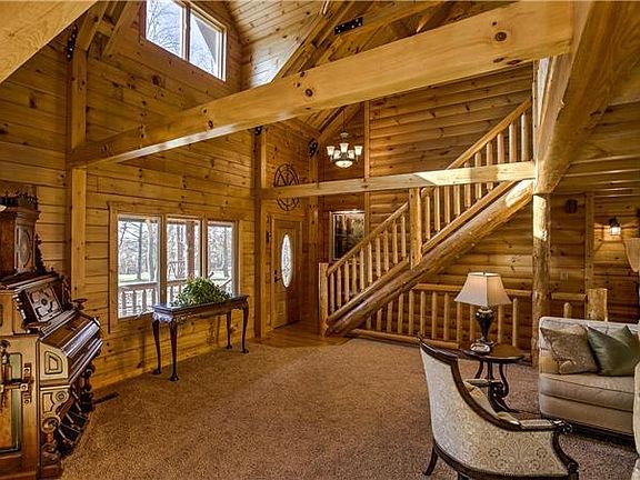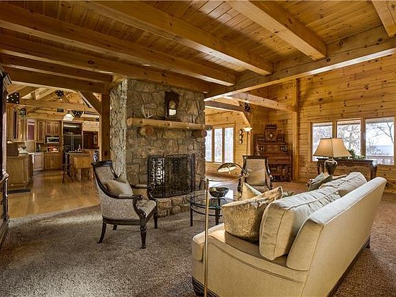 Amazing Eastern White Pine Log Home, featured in Log Home Living Magazine 2001, on the bluffs of Marais Des Cygnes River. Open floor plan with vaulted ceilings and two story stone fireplace. Master on the first floor. Separate 2 bedroom, 1 bath guest cabin. Features include: log sided outdoor sauna, professional shop, metal RV/storage building and log cabin playhouse. The surrounding woods provide awesome whitetail and turkey hunting. This property has so much to offer. Come see for yourself!