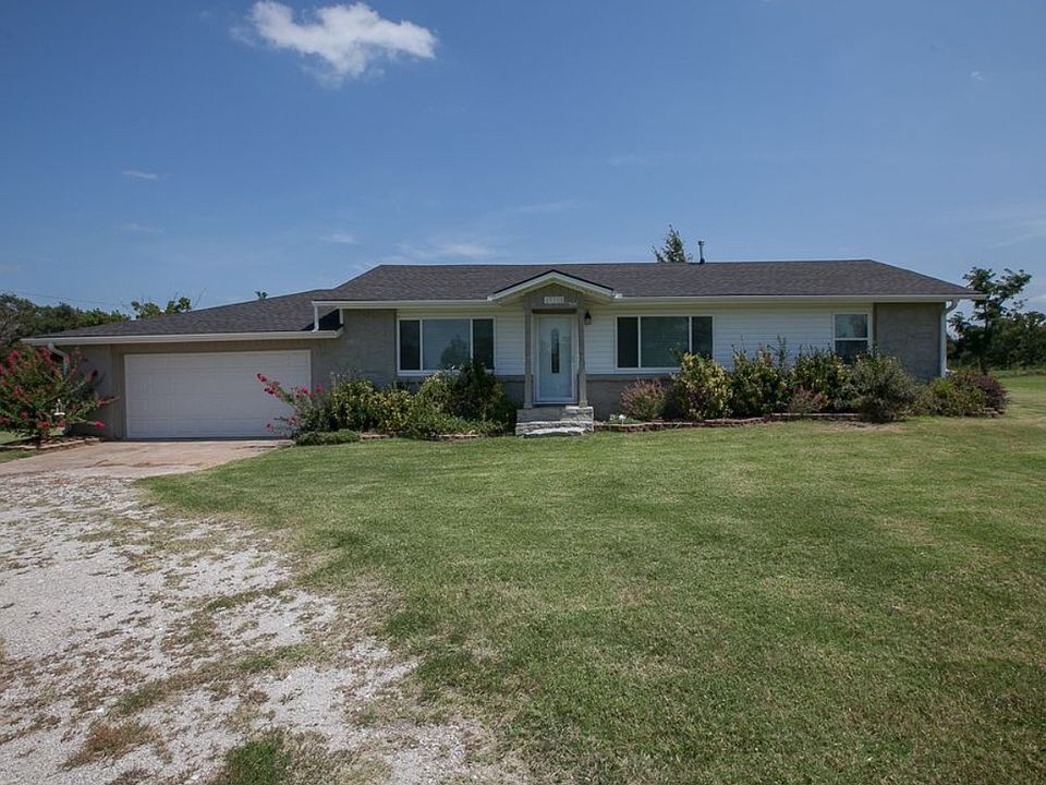 Peaceful mature setting on 2.5 acres. Cedar tree lined driveway. Multiple fruit trees, apple & pear. Large mature oak trees. Mins from Bixhoma lake. Fresh paint & updated large kitchen, Spectacular view of a large stocked pond adjoining to the east. Shop is fully equipped w/solar panels, charge controller, 2 12V deep cycle batteries & 2.5kw inverter. Barn & pens set up for self-sufficient lifestyle, mini ranch or farm. Far enough from town to be quiet, safe & secluded but also 10 minutes from Docs Market.
