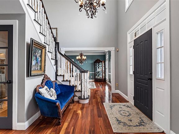 Gorgeous, completely updated, brick front 2 story backing to trees. Enter to find the formal dining rm & living rm, both featuring crown & dentil molding & plantation shutters. The spacious great rm has a large bay window for an abundance of natural lighting, built-in bookshelves & cabinets, woodboring fireplace & plantation shutters. Alcove off of the great rm features a walk-up wet bar w/ opening to the breakfast rm. The heart of the home is the gourmet kitchen w/ large center island, granite countertops, double ovens, walk-in pantry & adjoining breakfast rm w/ planning desk. Step down into the airy sun rm w/ vaulted ceilings & French doors to the deck. Master suite w/ coffered ceiling, his & her closets & full bath w/ walk-in shower, double vanities & Jacuzzi tub. 3 addtl bedrms & 2 baths on the UL. The finished W/O LL features a rec room w/ walk-behind wet bar, exercise rm, theater rm & full bath. Addtl features include ML laundry, 3 car side entry garage, zoned HVAC & much more!