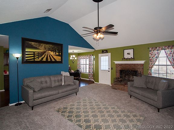 Impeccable home, backs to green belt. Glenpool Schools. New carpet & paint Pottery Barn style. New roof and siding. Soaring ceilings in living room. Cozy fireplace. Private master suites w/full bath. Rural development funding
