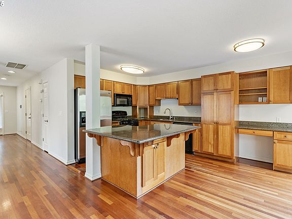 Welcome to this exceptional Woodhaven end unit townhome in Sherwood, where comfort and convenience harmonize with elegant finishes. This 4-bedroom, 2.5-bath residence boasts approximately 2,075 sq ft. Step inside to find stunning Brazilian cherry hardwood floors greeting you at the entry, flowing into an open-concept main level that invites seamless entertaining and daily living. The living room showcases a gas fireplace surrounded by slate tile and windows that capture natural light. The kitchen is a chef’s delight: slab granite counters, a large island, cherry cabinetry, and built-in appliances. Full baths continue the elegant aesthetic with granite surfaces. Upstairs, the spacious primary suite affords his & hers walk-in closets, while three additional bedrooms share thoughtful design touches including ceiling fans in every room. Downstairs, a versatile bonus space or home office features built-ins and high ceilings. Central air ensures year-round comfort, and the home includes an attached garage for convenience.