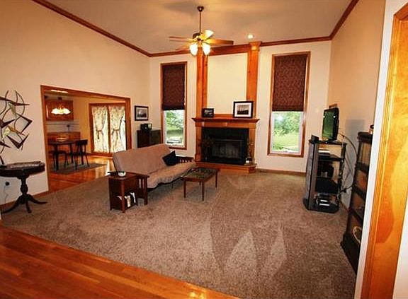 Detached 24x30 3 car garage, 40x56 workshop. Solar system. Kitchen features granite tops-pantry w/ roll out shelves-wood flrs. Great rm has a fireplace-cathedral ceiling & is open to kitchen & brkfst rm. Large Master has w/in clst & private bth w/ new shwr-dual vanities & Jacuzzi. Main lvl office has built in shelves & crown molding*could be non-conforming 5th br. Other feature include a HUGE finished basement*newer geothermal HVAC*fresh interior & exterior paint*efficient HWH*newer carpet