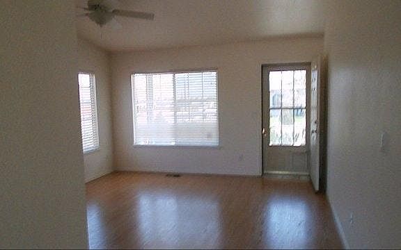 Adorable 1040 sq ft single story home on .16 acre home site. 3 bedroom, 2 bath, 2 car garage with a fully fenced rear yard. The rear yard is not landscaped but offers mature fruit trees. The interior photos currently show carpet in the bedrooms but that is being replaced with laminate flooring. The kitchen features a range, built in microwave, ( no refrigerator) dishwasher, pantry and ample cabinetry and counter space with a dining area. The family room is spacious with lots of natural light and a ceiling fan. Freshly painted interior and new flooring in all bedrooms. Call today for a private showing. Home should be move in ready around July 9th 2018. * Tenant pays all utilities to property Tenant pays all utilities. Owner pays HOA. Tenant is billed an additional $21 per month for trash service and $44 per month for sewer. Property does not include a washer, dryer or refrigerator.