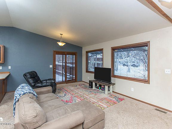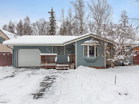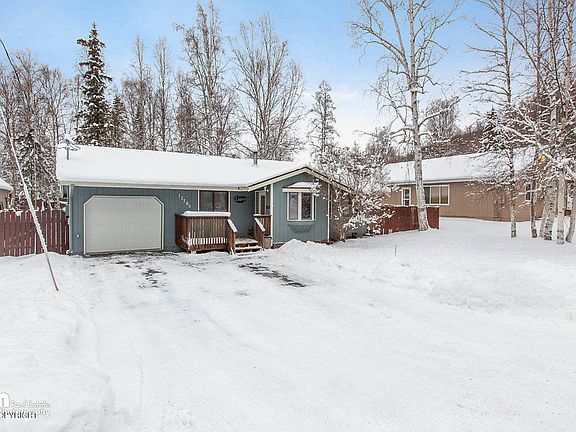 One level LIVING, open concept, vaulted ceilings, arctic entry to drop your boots, & cozy wood stove! Spacious kitchen w/ breakfast bar, all SS appliances & gas stove! Newer interior paint. Glass Patio door to side deck! Fully fenced private yard, w/ large storage shed. Master bedroom has a bay window seat, vaulted ceilings, WIC, & jetted tub! Quick commute to JBER & Anchorage.