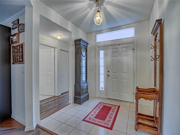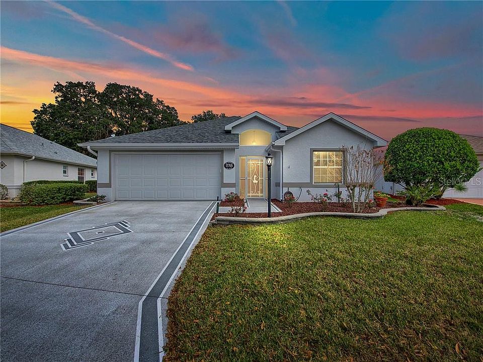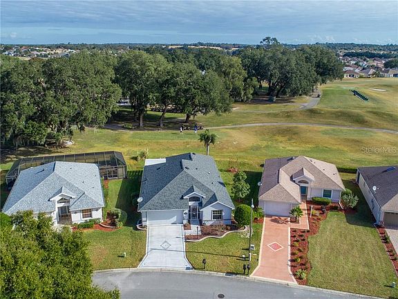 STONECREST 55 + GATED GOLF COURSE COMMUNITY WITH ALL THE AMENITIES AND 4 POOLS, LOCATED 2 MILES FROM THE VILLAGES BY GOLF CART AS THIS IS A GOLF CART COMMUNITY. ONLY 2 MILES BY GOLF CART TO THE VILLAGES! This CONCRETE BLOCK AND STUCCO VILLA ( villa is not connected to another structure, single residential with the villa association that maintains the grounds, weeds, trims hedges and trees no higher than 12 ft, mulch twice a year and the use of the facilities at the monthly fee of 229.00). LOCATED ON THE FIRST TEE OF THE CHAMPIONSHIP GOLF COURSE this home boast 2186 sq ft under heat and air ( you are taxed on 1542 sq ft on the 2186 sq ft). The view is beautiful as you look out to the tee and fairway and gorgeous granddaddy oaks as well as the country club. Close to all the amenities. This 3 bedroom 2 bath is ideal. the 2nd bedroom is Presently being used as an Office/Den and has no closet). home has an expanded enclosed lanai and will captivate your heart. Wood laminate flooring in the main rooms of the home and the master bedroom and 2nd bedroom, carpet in the 3rd bedroom and indoor lanai (indoor/outdoor carpet). Tile in the kitchen and breakfast room and laundry room. The 2nd and 3rd bedrooms each have a murphy bed,. Granite ion the kitchen counters and stainless steel appliances, the master bathroom is remodeled with newer shower, and cabinets and double vanities. The lanai is the room you will never want to leave with the panoramic view of the golf course and open and spacious living quarters for entertaining , card games, or relaxing. It gets even better when you step out onto the patio with pergola for the perfect evening under the stars grilling and watching the sway of the graceful limbs of the granddaddy oaks. This sweetheart will not last long!!!