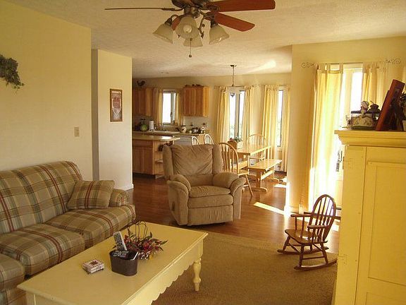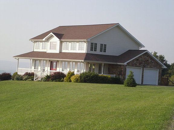 Home with a private setting includes 4 acres with an amazing view, from the wrap around porch! Complete with 4 bedrooms, 3 full baths, an open kitchen that adjoins a great room, dining room and formal sitting room.Finished Basement w/ Rec room is equipped with a wall mounted projector screen TV, 2 car garage attached and 1 car detached