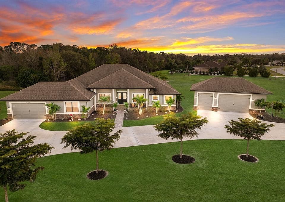 One or more photo(s) has been virtually staged. WOW! THE ADJOINING VACANT LOT is also INCLUDED in the price of this home! Keep it for yourself or sell it for Cash in the future! In a triumph of finesse, this custom-built country retreat in the coveted enclave of Foxbrook. This home is completely outfitted with High Quality Impact Windows and Doors ~ they're durable, long-lasting, stylish and strong! The attic is insulated with spray insulation which keeps. your attic within a few degrees of the same temperature of the inside of the home. A true ENERGY SAVER. The distinctive DUAL MASTER will certainly appeal to anyone seeking the optimal layout for entertainment, multi-generational living or working from home. The home along with the additional lot are perfectly positioned on one-acre each bordering a preserve. Nature enthusiasts catch glimpses of wildlife in their native habitat which boasts sweeping views of lush landscapes and cleared walking trails. Characterized by an expansive layout this 3,700SF Open Floor Plan home has plenty of space to store your BOAT, RV or CAR COLLECTION. The detached, 800 square foot, three-stall garage with 10-foot doors affords you countless options. Attention to detail is undeniable when you enter this home. Your eye is immediately drawn to classic architectural details and the stunning living room wall featuring a modern gas fireplace with stacked stone flanked by built-ins. At the heart of the home lies the vast GREAT ROOM and stellar eat-in kitchen showcasing TWO ISLANDS with a prep sink and farmhouse sink, custom wood cabinetry with soft close drawers, QUARTZ COUNTERS, a walk-in pantry with ample storage and a premier stainless steel appliance package with a gas stove. Three sets of ENERGY IMPACT SLIDERS beckon you outside where no detail was overlooked when the owners designed their modern refuge suitable for year-round enjoyment. With an adjoining POOL BATH, the expansive lanai with a CUSTOM HEATED PEBBLE TEC SALTWATER POOL AND SPA encourages leisurely sunbathing and alfresco dining while savoring brilliant sunsets. Retire to your secluded primary suite offering tranquility with a spa-like bath that features split vanities with separate makeup area, dual closets, a jetted soaker tub and a walk-in shower. The secondary bedrooms are ideal for family or guests with a connecting Jack and Jill bath. This like-new, one-owner gem was built to last and has been thoughtfully and meticulously maintained. The rare combination of quality building materials and superb construction are highlighted in this home that boasts IMPACT WINDOWS AND DOORS, with added spray insulation in the walls and ceiling for optimal soundproofing. Other notable features include porcelain TILE flooring throughout, trey ceilings, architectural features, tinted windows for UV protection, dual AC units, fresh interior and exterior paint, insulated garage doors, a large extended driveway for five or more vehicles and much more! Foxbrook is convenient to all the local amenities in the nearby Lakewood Ranch and the 301 corridor and is only a short drive to the powder-soft sands and turquoise blue waters of our award-winning GULF COAST BEACHES. Enjoy sports, artisanal eateries and cultural activities in downtown Sarasota and Lakewood Ranch with easy access to airports in nearby Tampa and Sarasota. This property is an elevated lifestyle - a sanctuary where architecture, nature and luxury merge seamlessly. Don’t delay, call us today for your private showing! Your new Publix is coming soon! Room Feature: Linen Closet In Bath (Bedroom 2). Room Feature: Linen Closet In Bath (Bedroom 3). Bedroom Closet Type: Walk-in Closet (Primary Bedroom).