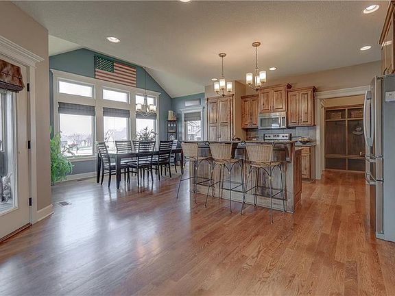 Incredible 2-story home in Greyhawke. This home features an inviting front porch, open floor plan and tons of upgrades throughout. Living room with built-in shelving, cozy fireplace and floor to ceiling windows. Eat-in kitchen with island, large walk-in pantry, granite countertops, stainless steel appliances, breakfast area and formal dining room. Spacious master suite with jetted tub, tiled walk-in shower, separate vanities and enormous walk-in closet. Finished basement with family room, full kitchen and bathroom.