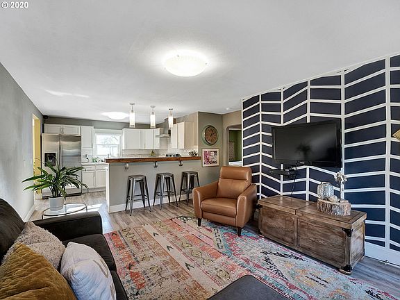 You've been waiting...here it is! Sweet 1950's ranch with all the right updates. Open Living/Kitchen. Remodeled Kitchen w/ stainless, tile, quartz counters & eat-at-bar w/solid wood top. Updated contemporary lighting & interior colors. Dining/family room w/ slider to expansive fenced backyard...your own park. Two bedrooms & remodeled bath w/tile & new fixtures. Newer laminate flooring, vinyl windows & electrical. Attached garage. Play, garden & entertain in your oversized front & back yards.