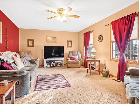 Very well cared for 1 owner home in NWAC school system. This home sits on 3.31 (+/-) acres on a shared pond Property extends into the pond for owners use. As you drive up the asphalt driveway you will notice the inviting covered front porch (6' x 50') that extends all the way across the front of the home with great views of the pond. There are 3 bedrooms and 3 full bathrooms (1 with tub shower combo upstairs and 2 with stand up showers.) The large first floor master bedroom suite offers privacy from the other 2 bedrooms which are upstairs. The master offers a good size walk in closet, master bathroom has updated tile flooring and walk in tile shower. There is a den beside the master bedroom that makes a nice home office. The first floor also has a large living room, spacious eat in kitchen with an abundance of natural wood cabinets and a breakfast bar. The laundry area is off the garage entry as well as another bathroom with stand up shower. Full finished walk out basement is one large room separated by the stairwell. The utility room is L shaped and runs the distance of 2 walls adding a ton of storage. There is a 14 x 14 wood deck off the kitchen/dining area for outdoor dining and grilling. Continuing out back, there is shed close to the raised bed garden to keep your gardening tools close. You will want to keep all of your toys in the 32' x 40' pole building. The building walls are 14' tall and the interior has concrete floors, a 12' x 40' loft with walk up stairs and 220 amp electrical service. Overhead doors on both ends for easy in and out. You can access the property from the private road the circles the pond or off a secondary driveway off Auburn Rd. New well in past 3 years, newer well pressure tank, tear off roof 2014. Oversized 28 x 28 attached garage had new garage door installed 2 years ago. Geothermal replaced 2006. There are Association restrictions for this property. No association dues, but there is an annual shared pond maintenance fee of $225.00. Make your appointment to see this home today.