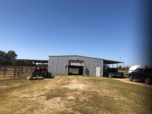 Private and beautiful. newer mobile home with 2 steel barns. One has 6 stalls, tack room and 2 overhead doors. Mobile is 2 bedrooms and 2 full bathrooms. New porch is coming this week. Pipe fencing in barn and runs around barn. 2nd Large barn 40ft by 40 ft (Approx) has large doors, electric and concrete flooring with room for apartment upstairs. . Beautiful land with large trees on creek side and bermuda pasture in other areas with no trees. This is what everyone wants, privacy and great building site for that dream house. Mobile can be used as a guest house or studio.
