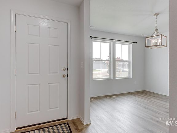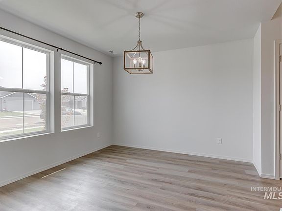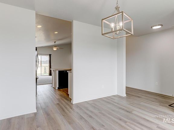 This little gem looks brand new, so adorable!! 3-bed, 2-bath split bedroom plan. Living room and kitchen have vaulted ceilings to giving it a large open feeling. All black appliances. Island & pantry in kitchen. Kitchen & dining room have LVP hardwood looking floors. Nicely sized dining room. Master has dual sinks, large counter, lots of shelving & a walk-in closet. Best part - back yard and one side yard have no neighbors ever plus home is next to common areas. Comes with back yard all done, blinds, Fridge.