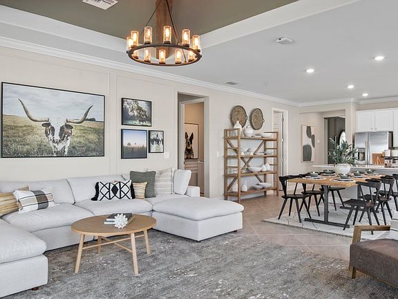 This contemporary two-story home is ideal for those who love to entertain, opening directly into a formal dining room, which flows into the adjacent open-concept living space made up by the kitchen, dining nook and Great Room. A secondary bedroom and the owner's suite offer privacy on the first floor, while three additional bedrooms and a versatile loft can be found on the second.