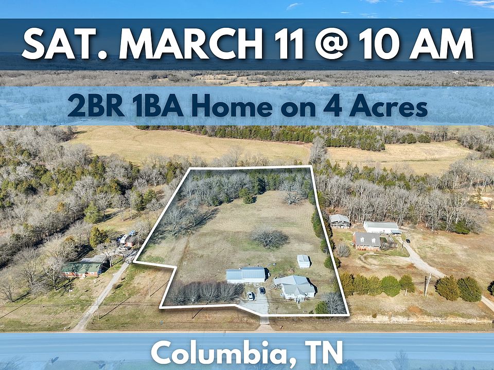 Absolute Auction, selling to the highest bidder with NO RESERVE! Auction held onsite & online, Saturday, March 11th @ 10am. Public preview date, Sunday March 5th from 2-4pm. Selling to settle an estate. Prime location, less than 1 mile to I-65. Currently zoned residential, but could be an attractive commercial spot. Buyer would need to change zoning if desired. Relatively flat property. 2+/- acres of open area, before you reach the woods in back. Pumpkin creek bordering back side of the property. Personal property to be sold after auction, includes a Ford truck & various shop tools. 5 car garage w/ air compressor lines run throughout. Additional shed in good condition. A 10% buyer’s premium is added to final bid.10% down required day of sale, balance due in 30 days. Financing Accepted!
