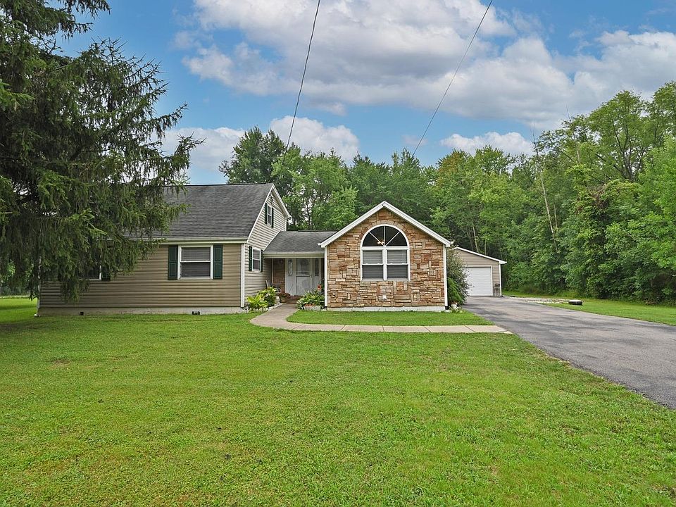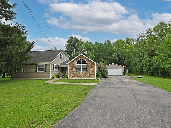 Country living on 1.154 wooded park like lot with wild life galore. Featuring 2 car garage, oversized driveway, leaf-filer gutter system, concrete patio, vaulted ceiling in LR, eat-in kitchen, master br with adjoining bath and sitting room or home office. Freshly painted throughout. Approximate sq. ft. 1600. All located on dead end street