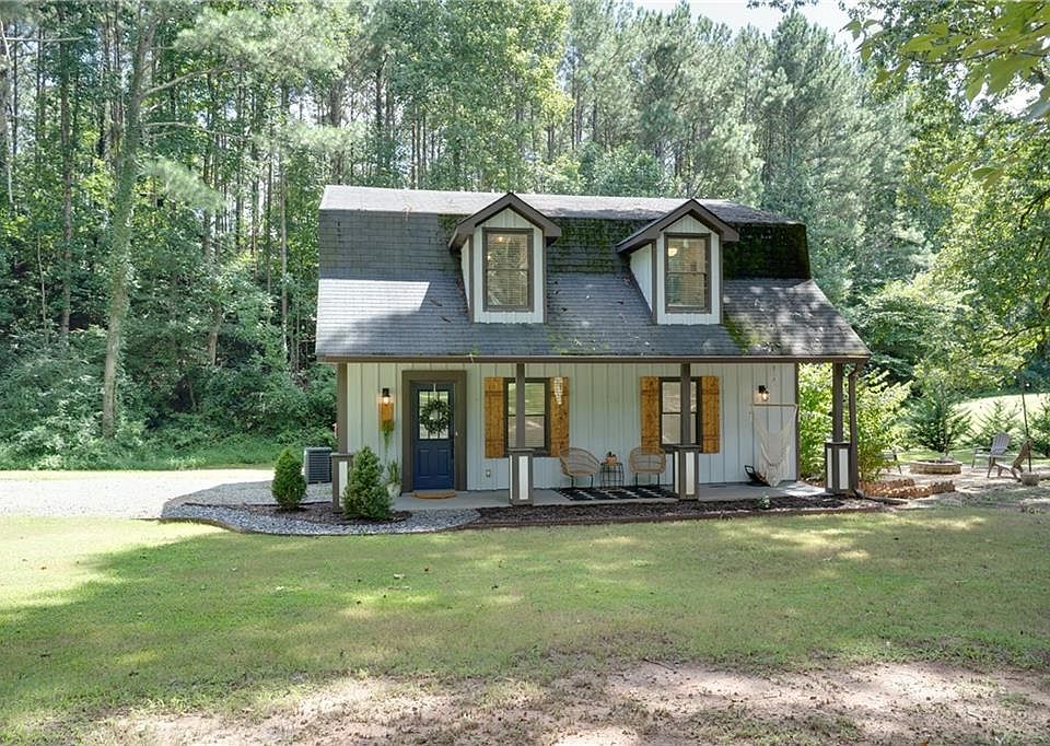 Absolutely adorable home set on over a quarter acre in quiet neighborhood! Less than 10 min to Marietta Square! You will be charmed from the moment you pull in the drive! Front porch welcomes you to light & bright open main level with current finishings. Spacious family room with separate sitting area & cozy fireplace open to dining room. Ideal set-up for entertaining with kitchen & dining room flowing out double doors leading to private back deck! Kitchen has space to gather & prep with views to private backyard! It holds beautiful cabinets, light counters, stainless appliances, & separate pantry. Laundry has designated area off the kitchen with access to half bath. Upstairs you will find Master Bedroom suite with walk-in shower, lots of storage, and walk-in closet! Two other spacious bedrooms up with lovely views to front yard and shared bath. Property is amazing with home set back off road and so much space to create the yard of your dreams! Watch wildlife from back deck or unwind around the firepit! So convenient to all the daily needs but feels like your own little paradise! Just unpack and start living!