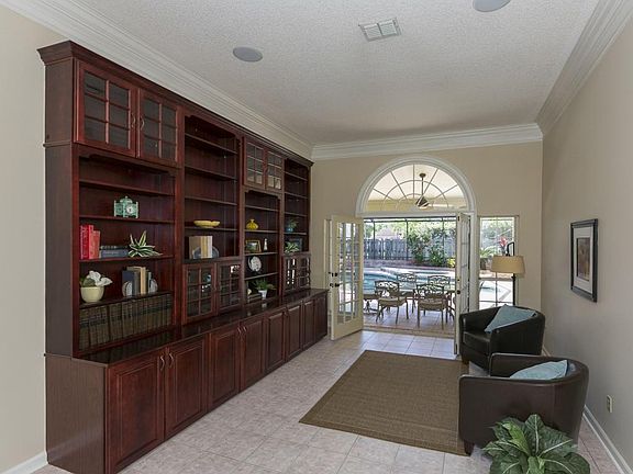 Welcome to Pace Island; Fleming Islands only 24 hour gated/staffed community. Hike the trails in the on-site wildlife refuge and take advantage of the lighted tennis and basketball courts, 2 community pools and the dock on Doctors Lake.This brick home on an estate lot features a screened pool with heated spa, outdoor kitchen, large master with two walk-in closets, formal living room with built-in library, dining room and breakfast nook, upgraded kitchen open to great room with fireplace, 12 foot ceilings in common areas, 3 nicely sized bedrooms, and 2.5 bathrooms. The four pool-facing rooms open to 1,300 feet of outdoor sanctuary. A must see!
