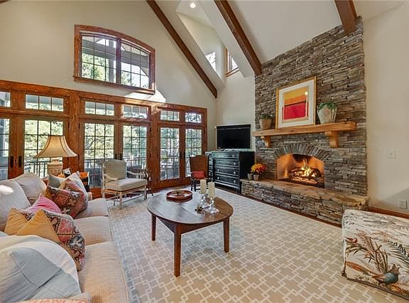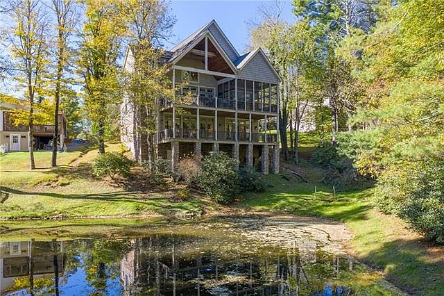 Your backyard is Golden Pond! Exquisite luxury residence hidden away in mountain resort village of Blowing Rock NC, but only a short walk along our town's charming garden path sidewalk to village center. 5500 +/- sq.ft. of impressive details in 5 BR, 4.5 BA home with three living areas, spectacular main kitchen plus game room kitchenette, two dining areas, bonus rooms, two laundries, two rock fireplaces. Spectacular interior - offered mostly furnished so you can immediately enjoy your gorgeous secret cove. Natural light flows through tall windows. Uplifting high ceilings. Both rear decks overlook tall pines and hardwoods sheltering calm waters as large koi gently glide and dragonflies jet across pond. Perfect grilling deck. Screened porch off master bedroom. Unique, rare location feels like your own secret garden. Property sits on edge of peaceful pond that's fed by headwater springs of the New River. High mountain elevation with easy access - all in beautiful Blowing Rock, NC.