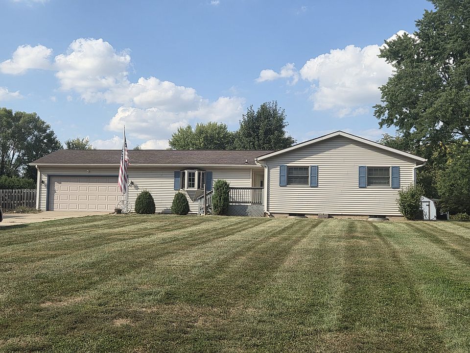 This great 3 to 4 bed/2 full bath ranch in unincorporated Ottawa has a lot to offer! Including an extra long driveway that can hold 6 to 8 vehicles, 2 car heated attached AND 1 car detached garage, fenced in back that opens 12ft wide to accommodate larger vehicles or toys plus man gate, a back deck, above ground pool, full basement with bar, family room, laundry room and full bathroom all on just shy of an acre! Furnace and a/c installed in 2021. Well pump replaced 2022. Radon mitigation in 2018. Sliding glass door in dining room replaced in 2021. No power to detached garage. Fridge will be replaced with ss side by side. The bar is plumbed for water. Shed stays. Showings are appointment only.