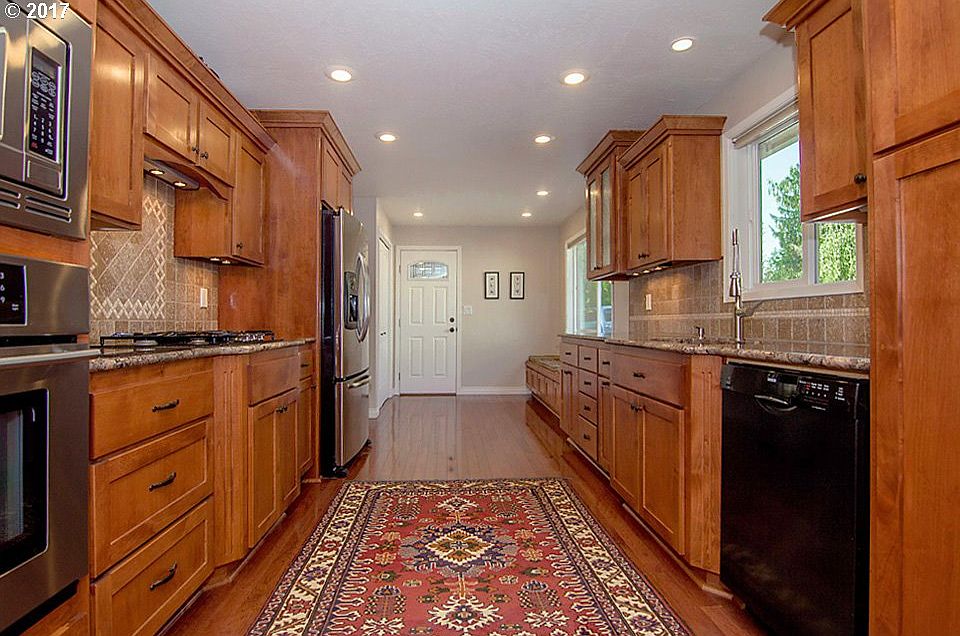 This is an exceptional home. Beautifully remodeled, meticulously maintained. Rich new granite kitchen, w/high gas cooktop, hardwood floors, and beautiful cabinets. Large living room opens up onto the covered TREX deck outdoor space. This home would be perfect for a two family setup. Huge family room downstairs with full kitchen & bathroom. Entrance is all paved, w/RV parking, large 2 car carport plus one car garage.