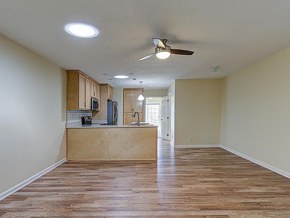 This spacious penthouse apartment occupies the entire top floor of a multi-use building. It provides a light and airy ambience with skylights. It has a unique "E" shape. It is beautifully remodeled. The prongs of the "E" are perfect for shelving. A book collector would swoon over this, line them with book shelves. Or you can place fitness equipment in those bays. This penthouse used be two rental units; the previous owners merged the units and were living in this penthouse. It has plenty of cabinets and a large walk-in closet. This apartment includes the use of a fenced backyard. Huge laundry room/pantry has washer dryer hook-ups. Bring your own washer and dryer. One of the bedrooms has a sliding door that leads to a lovely deck/balcony. The kitchen has an island. There are skylights and large windows, so the unit is well lit. There is a covered parking spot for this residential unit. Currently, there is a vacant retail space on the ground floor. If you want live and work at the same property, please check this out. Owner pays for water. Tenant pays all other utilities and renters insurance. Tenant maintains the fenced yard. Small dogs accepted, with owner's written approval, for pet rent of $50 per month per dog. Rent is paid online with Avail. Renters insurance is required. Smoking is not allowed anywhere on the property. Please submit an application before asking to tour the property. A credit score of 650 or better is required.