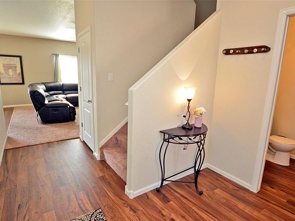 Welcome to this charming home situated on a rare private lot backing to open space. Front entry features covered front porch & porch swing. Head inside to an open foyer and formal living/dining area. Open concept main living space is warm & inviting with a stylish wood accent wall & sunny western exposure. The adjacent dining area/kitchen features black stainless appliances, pantry, and island perfect for entertaining. Step outside to your private back patio & savor the sunsets & mountain views with no one behind you! Upstairs is your relaxing master w/en-suite featuring double sinks & spacious walk-in closet. Three additional bedrooms & loft provide for plenty of flex space. Secondary bath w/double sinks. Second floor laundry includes washer & dryer. Don't miss this opportunity to live in this fantastic community loaded with parks, surrounded by open space, and conveniently located just 35 min. NE of Denver, 25 min. to DIA, and just a short distance from I-76 and Barr Lake.