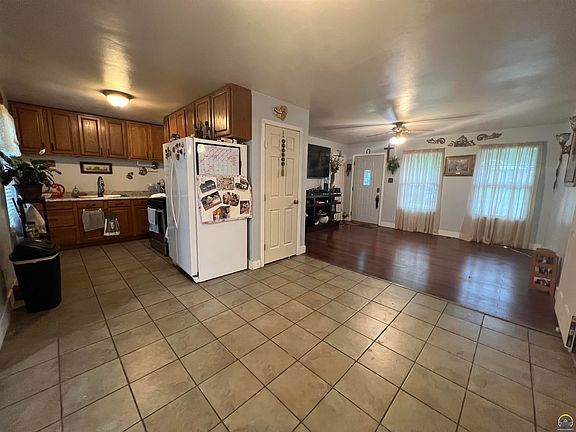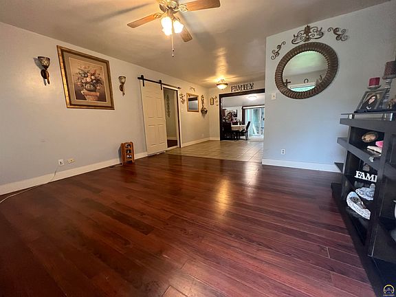 Nicely remodeled & enlarged Ranch home. Lots of living space for the money. Nestled in a quiet neighborhood minutes from Lake Shawnee recreational facilities, shopping, schools, restaurants & interstate highway. Entertain in the light & bright Living Room! Wine & dine in the spacious DR/Kitchen. BBQ & entertain family & friends on the 16'x12' covered porch. Spend quality time with the family in the large 264' Recreational Room that was added leading to two sheds & Fire Pit. Relax over a warm fire as you watch the kids or pets play in the fenced back yard. Generous storage in the two sheds & covered porch. Kitchen appliances stay. The garage was converted into a spacious Primary BR. Features include a new roof, thermal pane windows, sliding door, interior doors, interior paint, kitchen cabinets, pantry, remodeled bathrooms, kitchen cabinets, light fixtures, window treatments, flooring,... This is not a Drive-by. You must see the inside to appreciate the awesome home improvements. Call today to schedule a private showing on your behalf. The home is back on the market at no fault of the sellers.