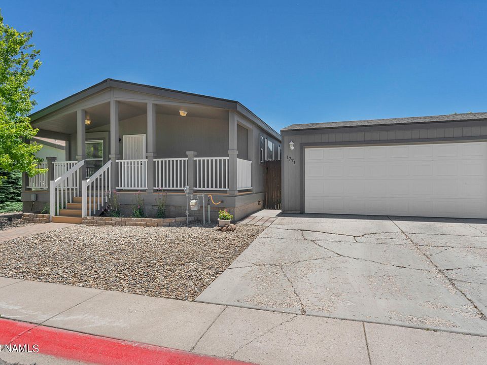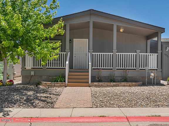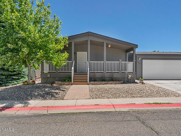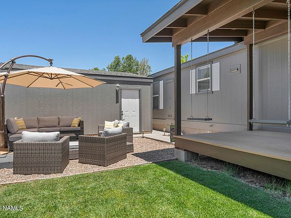 Welcome to this exquisite manufactured property located in the beautiful city of Flagstaff, AZ. Step into a captivating home that exudes warmth and charm, accompanied by a meticulously maintained yard. Recently refreshed with a brand-new exterior paint just a month ago and equipped with a roof that is only two years old, this residence showcases both beauty and durability.
