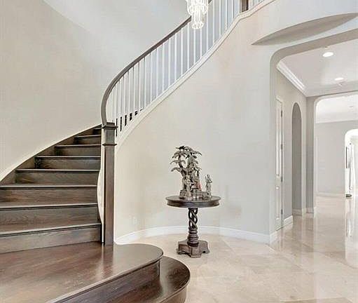 Large islandUpstairs bonus roomCustom millworkSpa-like bathCovered seatingBrazilian-style woodDiagonal marble floors