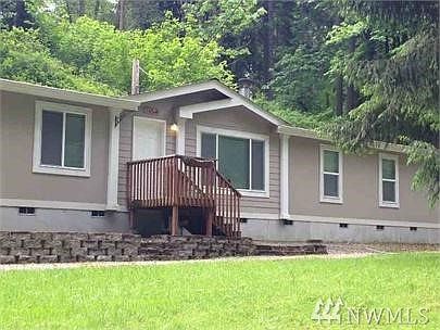 Three bedroom 2 bath on 1 acre! Large open floor plan w/ vaulted ceilings. Living room has wood burning fireplace. Kitchen has laminate floors, a large island, and a dining area. Separate laundry/mud room off of kitchen and back deck. Master bedroom has den/sitting room, walk-in closet and 5 piece bathroom w/ large soaking tub. Other bedrooms are nice sized. Dining room off of kitchen. Tool shed, storage, chicken coop and carports outside. Large circular driveway. Great price for 1 acre!