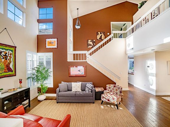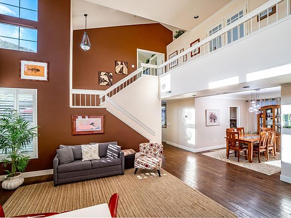 METICULOUSLY kept Las Palmas home available now! Boasting spacious bedrooms & a ground floor office/den (could be used as 5th bedroom), you'll enter into an inviting living space, with warm tones,high ceilings, crown molding & hand-scraped oak flooring. Upgraded kitchen with white cabinets, stainless appliances, gas range, granite countertops, and granite composite sink. Lounge in your cozy family room off the kitchen, w/gorgeous glass doors that open to the beautifully kept backyard, ready for gardening or relaxing in the sun. Formal dining room, an office/den, laundry room leading to the 2-car garage, and a full bathroom complete the ground floor living. Upstairs you'll find the enclosed loft, 2 bedrooms, a guest bathroom, plus the Master suite. There you'll enjoy the brand new Trex deck, perfect for morning coffee or evening wine. En suite includes a Jacuzzi tub, travertine tile,& walk in closet. Don't miss seeing this like-new home in the sought after Las Palmas community!