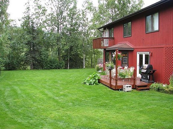 Well maintained family home in desirable Eagle Ridge neighborhood, full of majestic trees and mountain views. Very minimal traffic due to end of road location and cul de sac. Property is adjacent to the bluff of Eagle River, which brings moose, fox, and bald eagles through the backyard. Well established perennials blossom all around the house. Wonderful floor plan allows for easy flow - NOT a split level design. Generous entryway and wide staircase leads to 4 spacious bedrooms all on upper level. Sizeable Master Bedroom has its own balcony with incredible mountain views. Newly tiled Master Bath with sauna and oversized jetted tub. Double vanities in both main bathrooms. Spacious kitchen with walk-in pantry. Inviting Family Room opens to backyard deck. Very large crawl space for storage. New roof and exterior paint. Shed and RV parking on flat resealed driveway. Wide 2 car garage equipped with utility sink and lots of cabinets for storage. New boiler for baseboard radiant heating. We can link you to an on-line photo tour of the home as well. Neighborhood Description See "What we love about this home" section above.