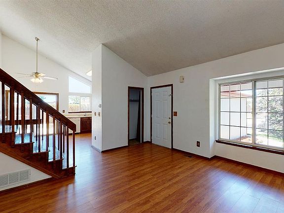 The ONLY single family home currently available in Aurora Knolls - will go fast! Move in ready, live while you customize! Perfect starter home, ready for your personal updates to build equity! Updated homes in the Knolls are selling for around $350,000. Already done: vinyl windows, paint, roof and furnace within the last 6 years, and a new water heater! The home is also equipped with a swamp cooler and sprinkler system. Upper level has 2 bedrooms and a full bath, accessible from hall and one bedroom. Main level is kitchen, dining, and living room - lower level is family room with fireplace, den, and a 3rd bedroom with its own bath, laundry. Two car garage! A sliding door exits the kitchen to a tremendous wood deck for summer entertaining. This home sits on one of the largest lots in the area, and is a short stroll from adjacent Dalton Elementary and Colombia Middle School - no carpooling needed! Mature trees, and a neighbor on only one side! Home has been a rental for many years, Seller's knowledge is limited - Buyer to rely solely on Buyer's own due diligence. The shed stays! Hurry - won't last!