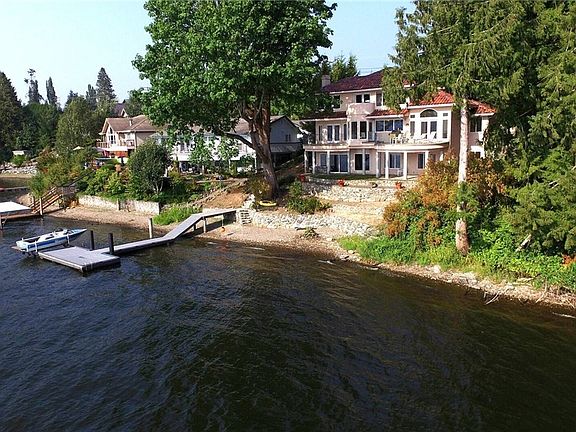 Waterfront at it's best. Gorgeous custom Spanish Architecture home with stunning entry and sweeping staircase that leads to a luxurious master suite with walk-in closet and private deck with awesome views of the lake. Home features kitchen with granite counter tops and a large sub-zero refrigerator, radiant heat, skylights, vaulted ceilings, surround sound, built in vac, rec room and a bonus/storage room on lower level. Fantastic views from 3 decks. Dock/boat lift. Near a golf course.
