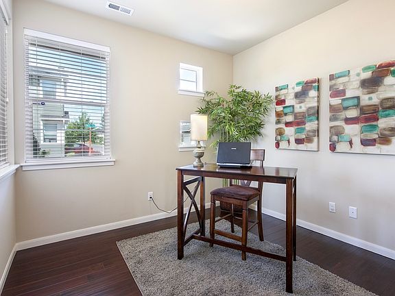 Bright WEST facing home backing greenbelt. Almost NEW w/ 7yr bldr warranty + 1-Yr home warranty for buyers. Main floor has den & full bath perfect for office or hosting extended guest stays. Open layout w/classic hardwoods, extended kitchen counters, walk-in pantry & stainless appliances. Full 4 bd upstairs w/spacious master ensuite. Lg windows, recessed lighting, surround sound wiring & A/C. Top rated schools, close to Tambark Ck Pk, shops, dining & freeways. Move in before summer starts!