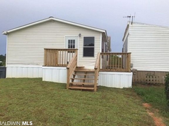 Double wide on almost an acre lot. Beautiful deck and patio. This could be your paradise with fruit trees and a garden spot. Currently has a well stocked fish pond and 2 out buildings. Has power, septic tank and water pump. Only 12 minutes from downtown Foley, 3 minutes from Beach Express and 2 min from Hwy 59. It has a separate guest area with bathroom with its own door to outside. This property is located in quiet Summerdale. The mobile home needs just a few cosmetic updates to be your happy forever home.